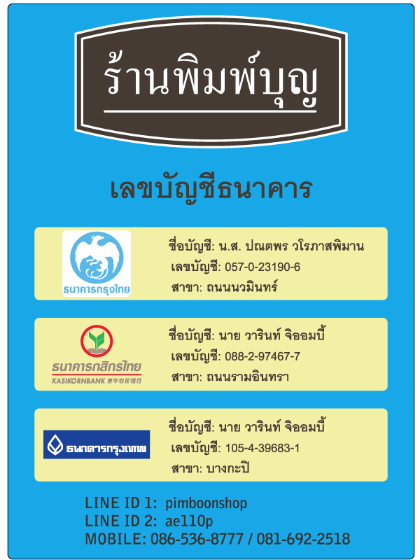 โอนเงินชำระค่าสินค้าได้ที่ บัญชีธนาคาร